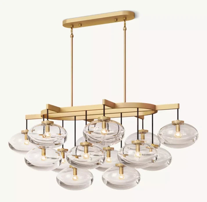 Illuminate your space with the luxurious and elegant Cabrette Clear Glass Linear Chandelier. Made with high-quality materials and crafted to perfection, this 54" chandelier adds a touch of sophistication and exclusivity to any room. The clear glass design creates a beautiful play of light, making it the perfect statement piece for your home.