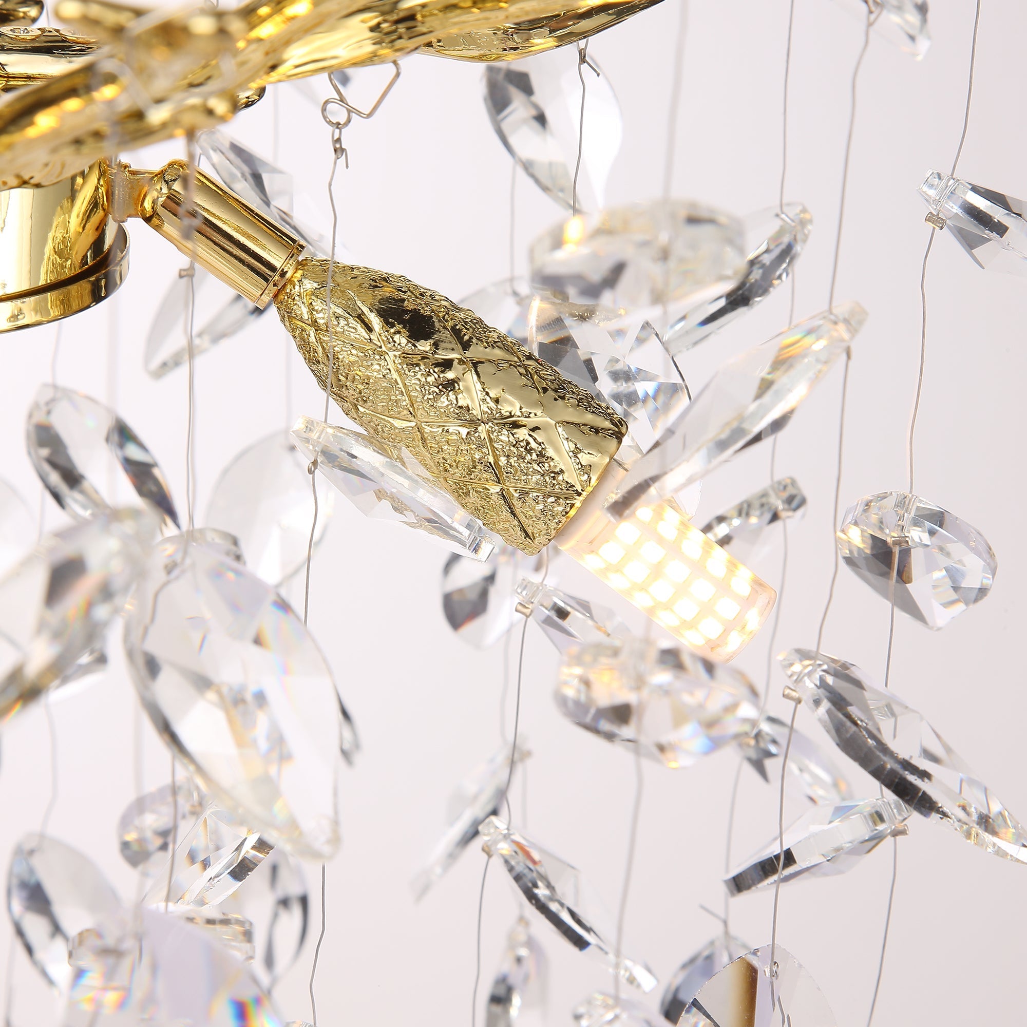 Elevate your space with the Cleaseries fixture, a blend of metal and crystal that achieves a fresh and elegant look. This combination adds a touch of romance and sophistication to any installed space. The chandelier's design beautifully embodies the delicate balance between life and art, making it an attractive and eye-catching addition to any room.