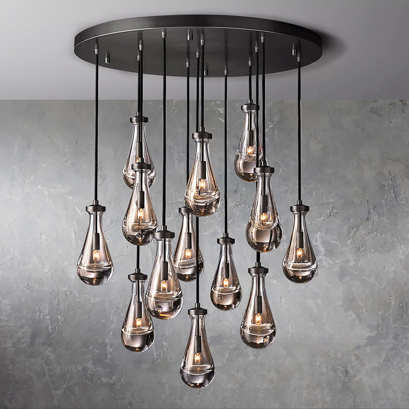 Each exquisite raindrop glass pendant combines high-quality copper elements to show luxury. Each raindrop pendant is carefully blown by workers with many years of manual experience. Ceilings, ceilings and fittings are made of solid brass. The transparent raindrop pendant reflects the warm light. It highlights the elegance and temperament of this chandelier.