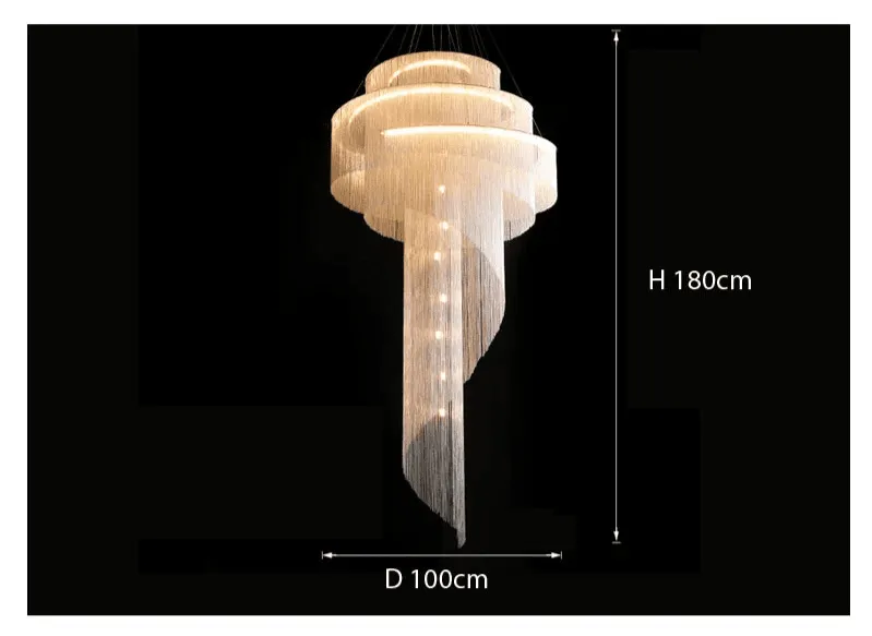 This is a contemporary work of art it is a source of light, this on-trend chandelier makes a statement in any space. High-Quality Gold Electroplated Stainless Steel, Exquisite Craftsmanship, Energy Efficient LED Light Source. Hundreds of aluminum chains are suspended asymmetrically from a linear shape frame, casting a refractive glow to dramatic effect. The process of tassel chain presents the perfect combination of handcraft and design. It can stand out in many lighting styles. Out of a classic, vintage industrial style and some modern flair evolved this stunning piece. You can find the right products for you in Oasislamps online stores. If you can't find it, we can also customize the products you like.