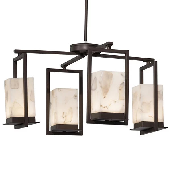 Outdoor decor done big with an impressive profile that stays true to its minimal roots. The Alabaster Rocks Laguna LED Outdoor Chandelier shows off an ensemble of individual diffuser shades with a squared rod frame that is simply peerless in scope and execution. Starting with its set of diffusers, each of which are made using genuine shaved Alabaster set in Resin, we see how it uses line and shape to create a dynamic form designed to fill a room with ease. Each chandelier is finished in your choice of modern finishes to make your outdoor sitting area stand out.