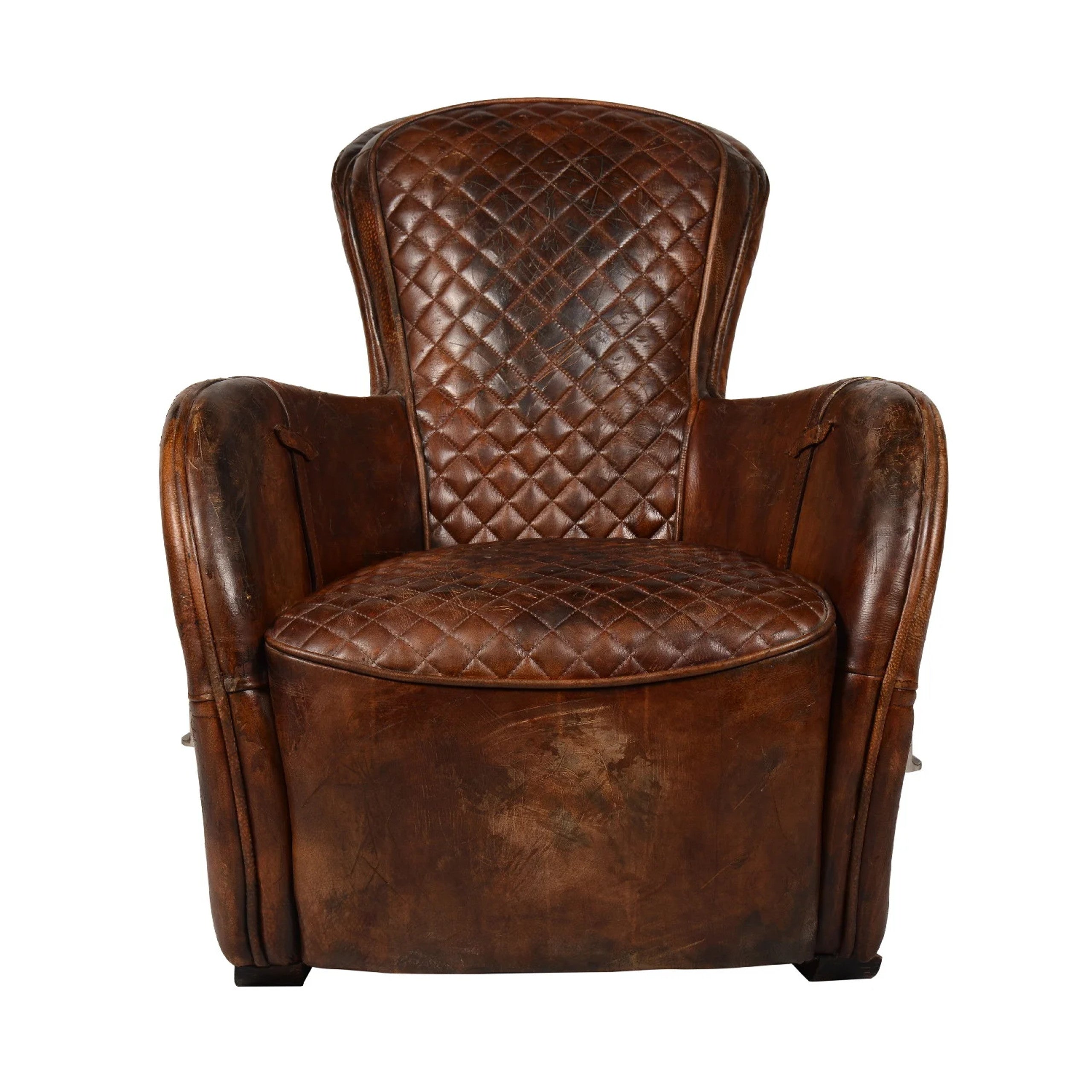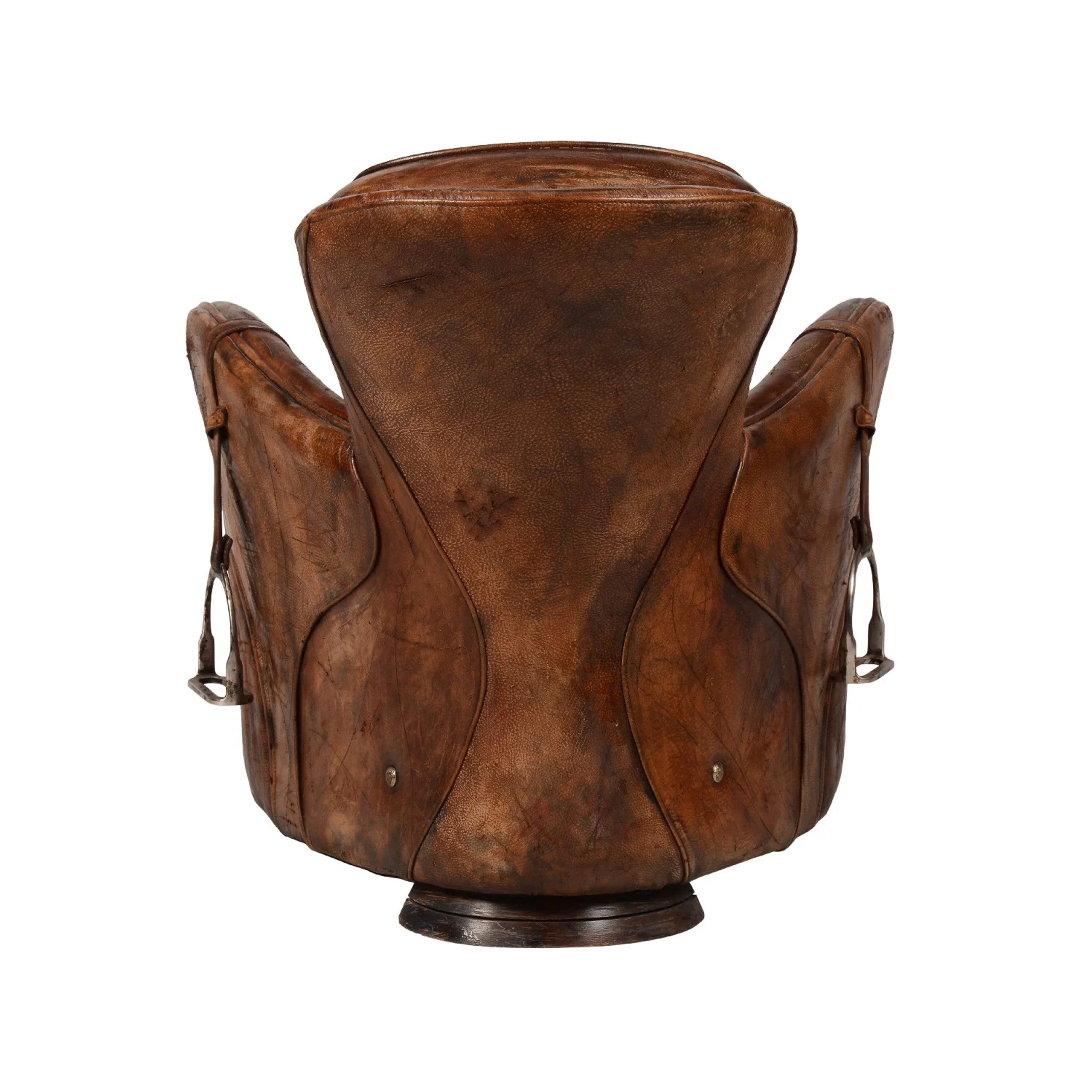 Designed with luxurious quilting and actual stirrups on each side, this leather chair is truly one-of-a-kind.| Inspired by the heritage of equestrian pursuits, the Saddle Chair captures the spirit of freedom and the strength embodied by a saddle. Complete with actual stirrups on each side, the sleek, dynamic shape is made with a fibreglass frame and the chair's back is contoured to mimic the silhouette of a real saddle. Upholstered in Timothy Oulton's hand-distressed aniline leather, it has quilted detailing on the seat and back for added comfort and a plush finish.